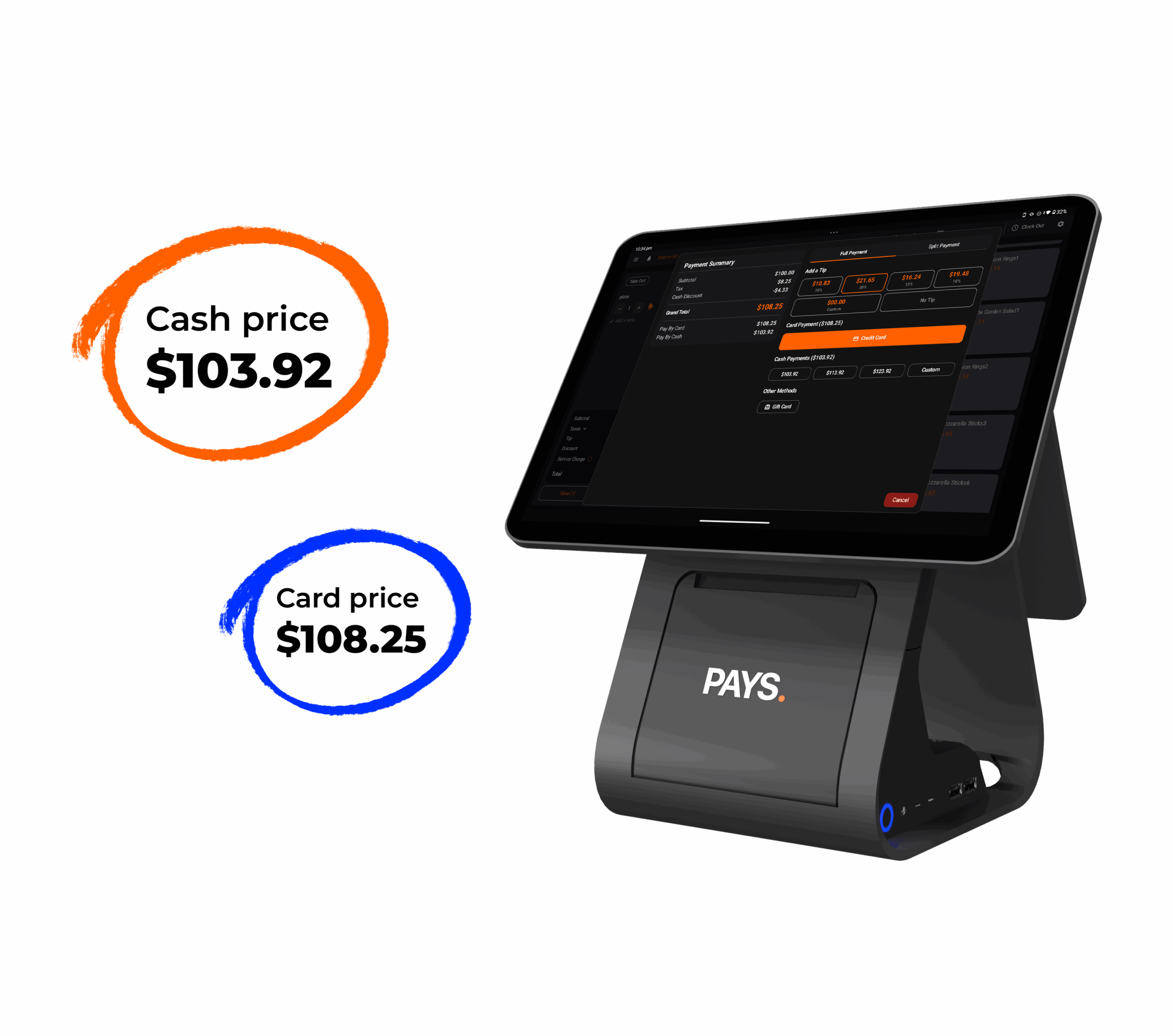 Two prices, zero headaches. Cash or card, PAYS adjusts on the fly.